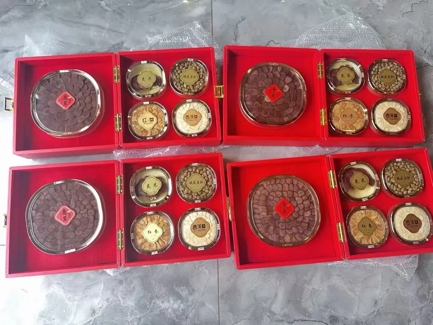 正品东北特产喜服团圆双层四宝礼盒皮质款,高端大气寓意也好,今年过节就买它,倍有面子!内含,鹿茸30克。西洋参片15克。红参片20克,铁皮石斛50克,灵芝15克
