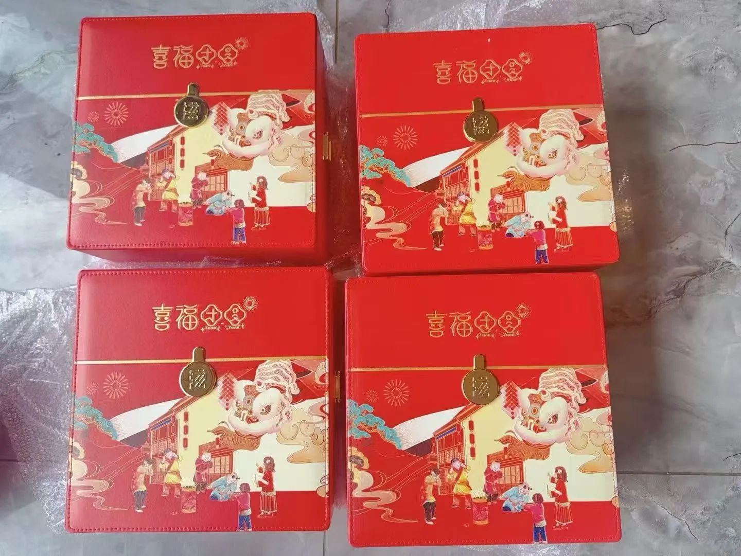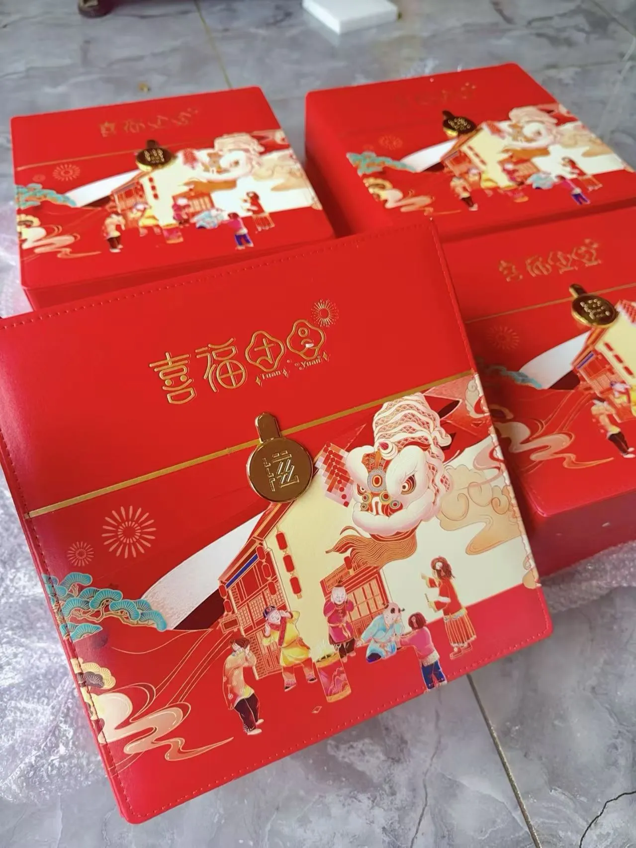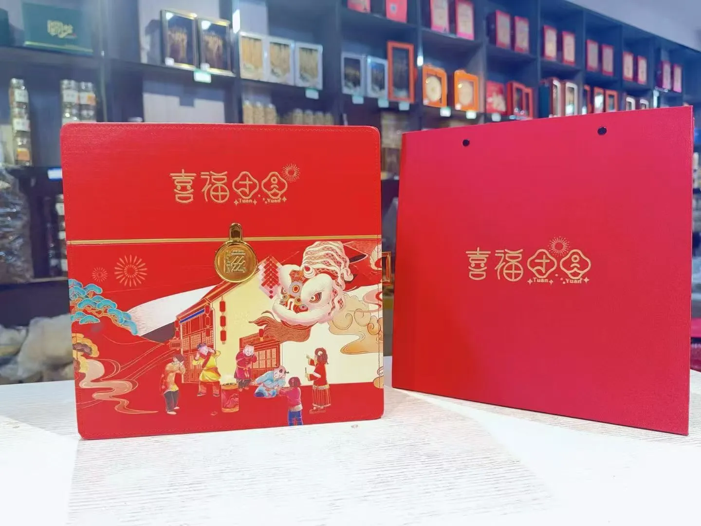 正品东北特产喜服团圆双层四宝礼盒皮质款,