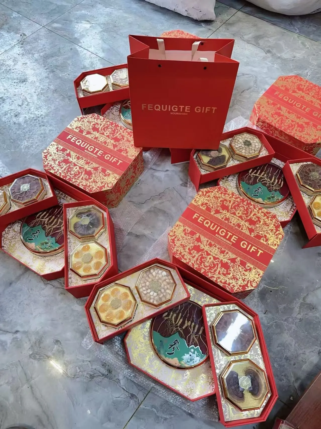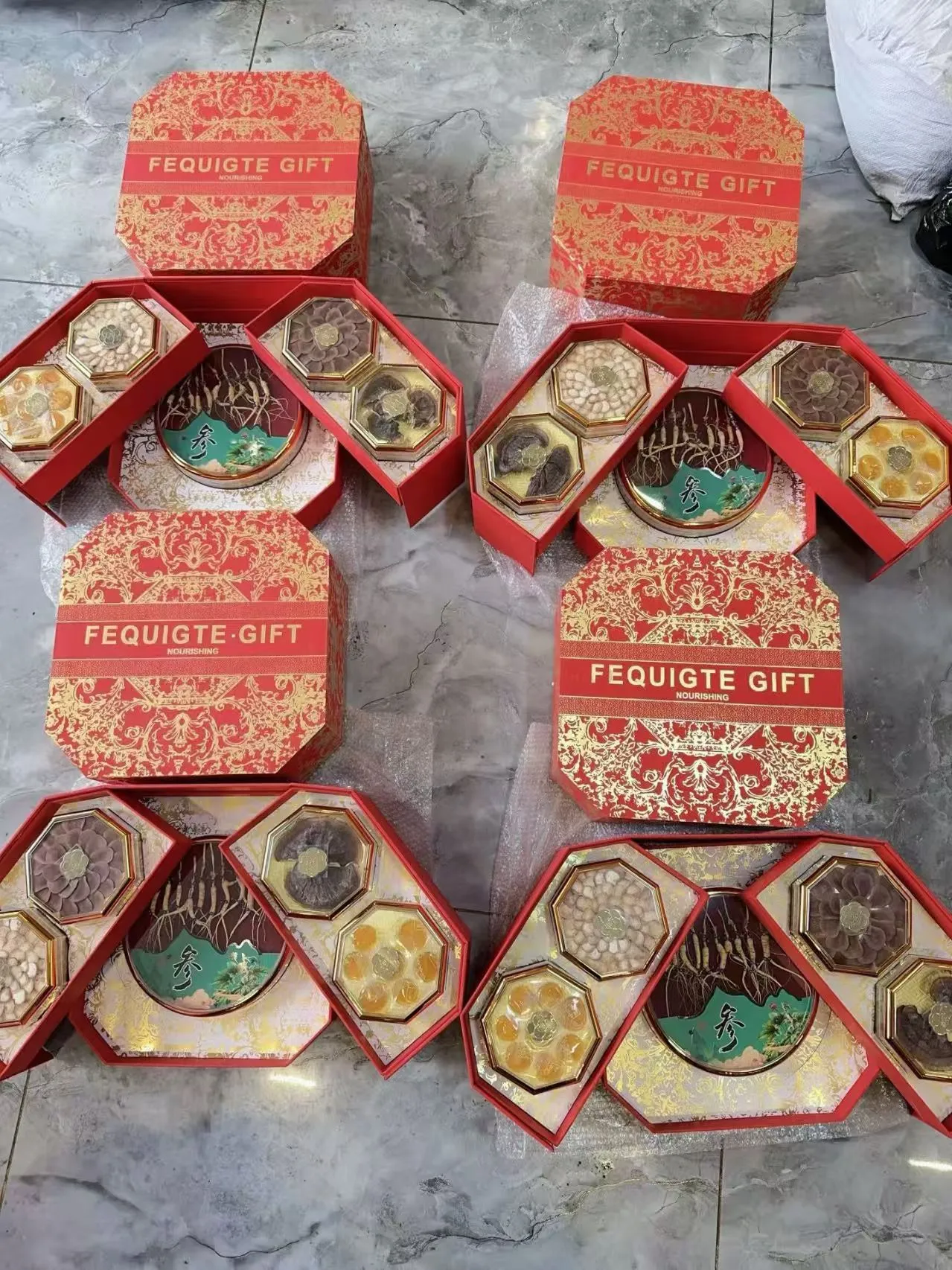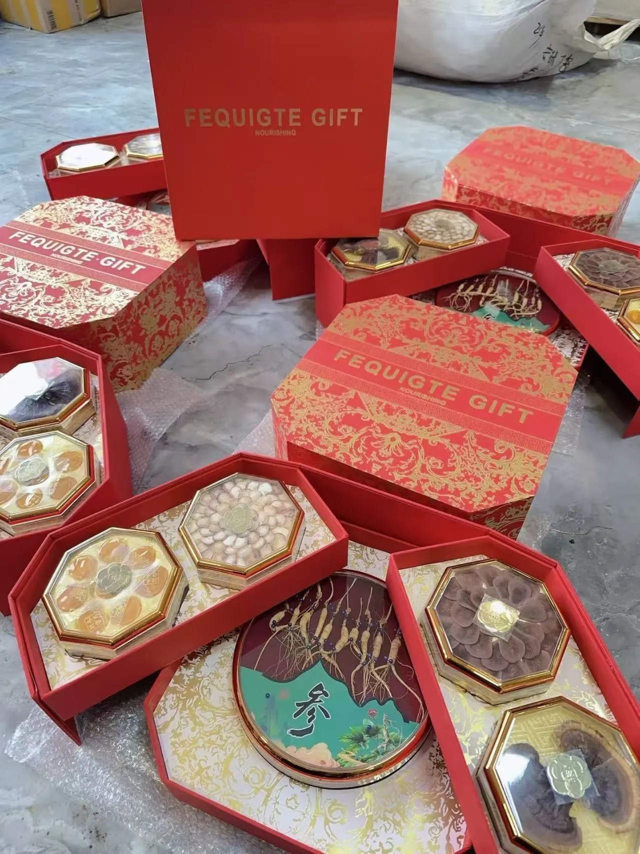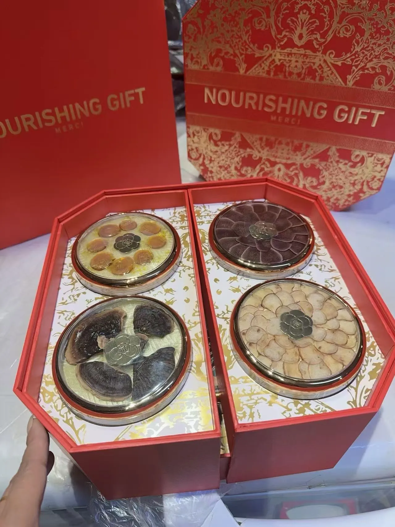内含:林下参、鹿茸、人参蜜片、灵芝,采用双层设计,高端大气,送礼必备。