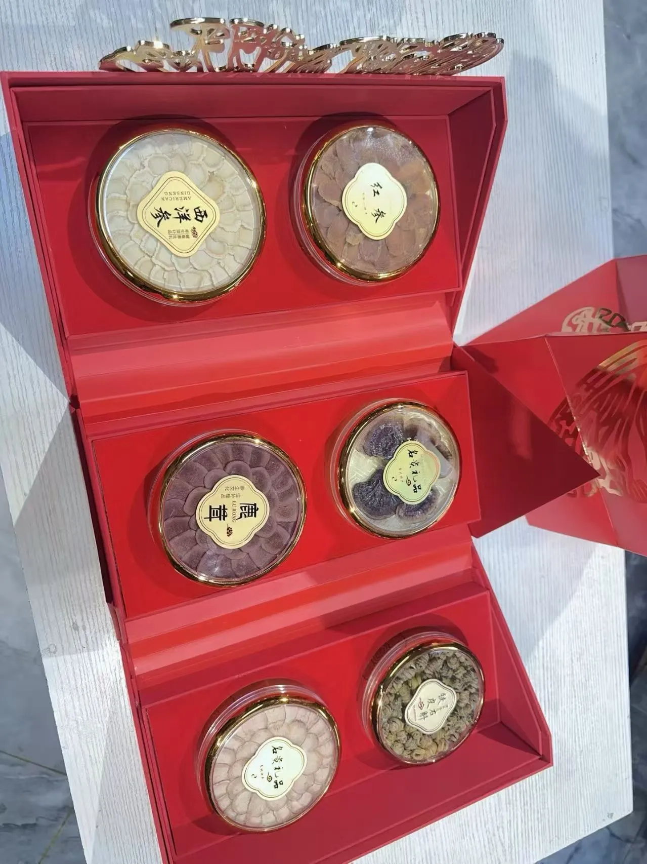 新款蝴蝶六拼礼盒西洋参片,红参片。鹿茸片,鹿鞭片,灵芝片,铁皮石斛!